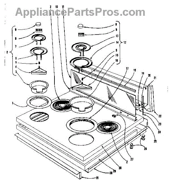 Parts for Kenmore 101.903610 (101903610, 101 903610): Cook Top Section Parts