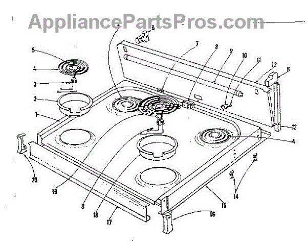 Parts for Kenmore 101.9036400 (1019036400, 101 9036400): Cook Top Section Parts