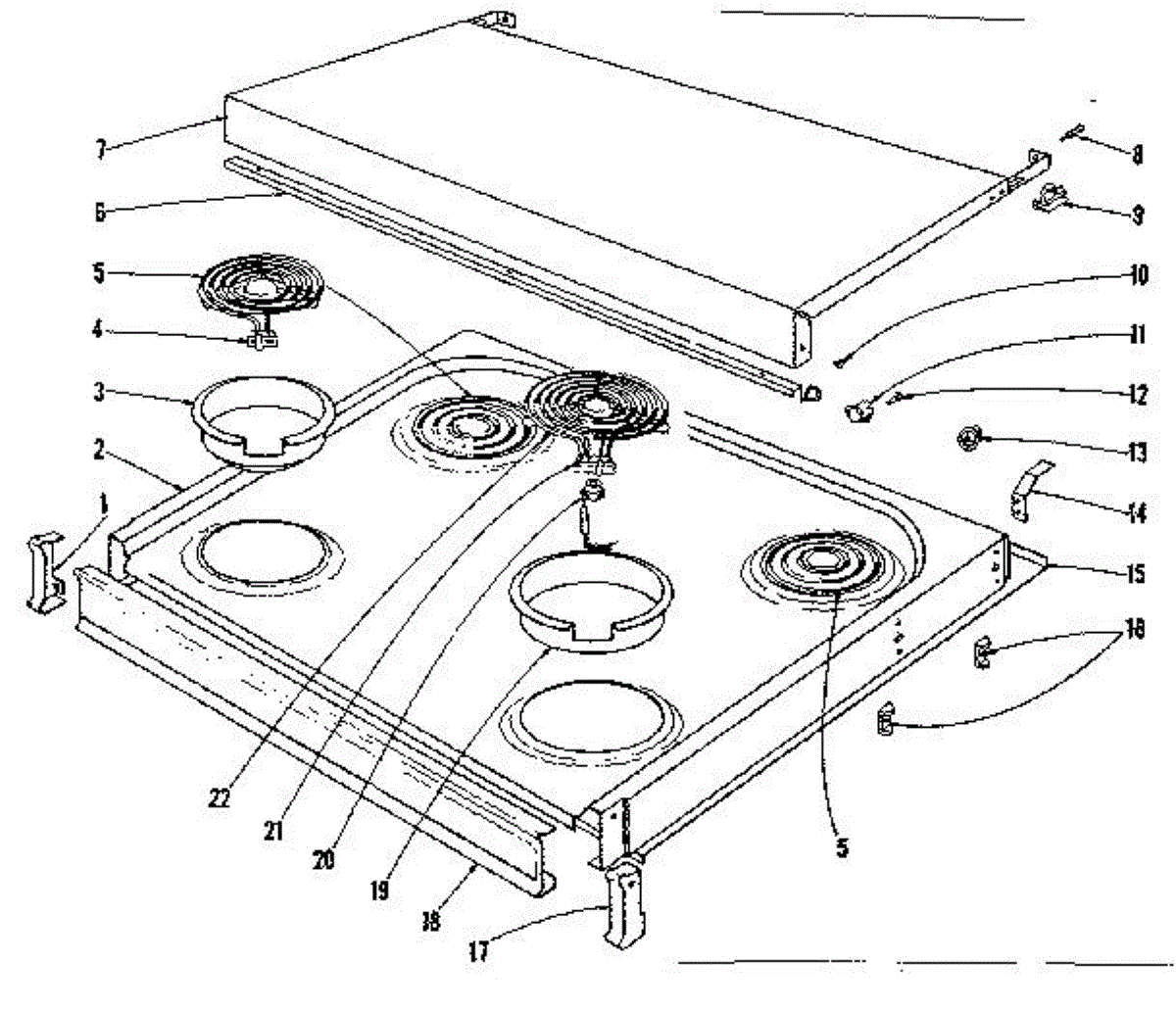 Parts for Kenmore 101.9136480 (1019136480, 101 9136480): Cook Top Section Parts