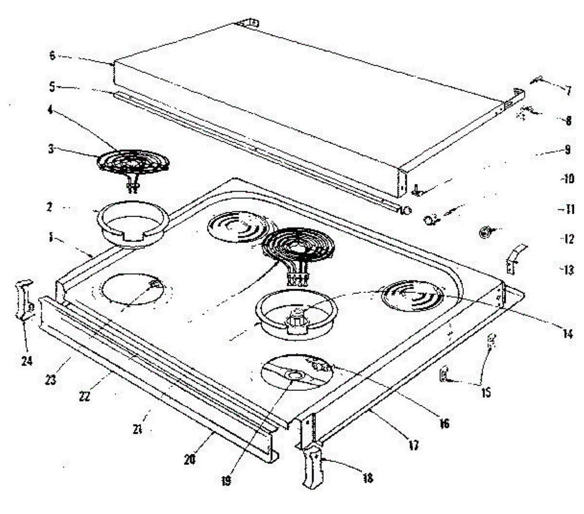 Parts for Kenmore 101.9136580 (1019136580, 101 9136580): Cook Top Section Parts