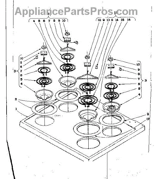 Parts for Kenmore 101.916591 (101916591, 101 916591): Cook Top Section Parts