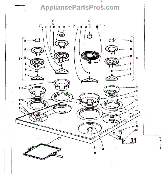 Parts for Kenmore 101.921600 (101921600, 101 921600): Cook Top Section Parts