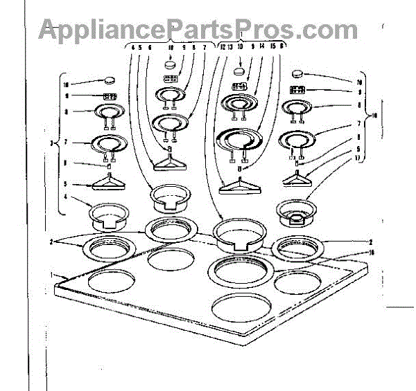 Parts for Kenmore 101.930610 (101930610, 101 930610): Cook Top Section Parts