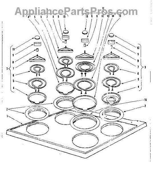 Parts for Kenmore 101.933600 (101933600, 101 933600): Cook Top Section Parts