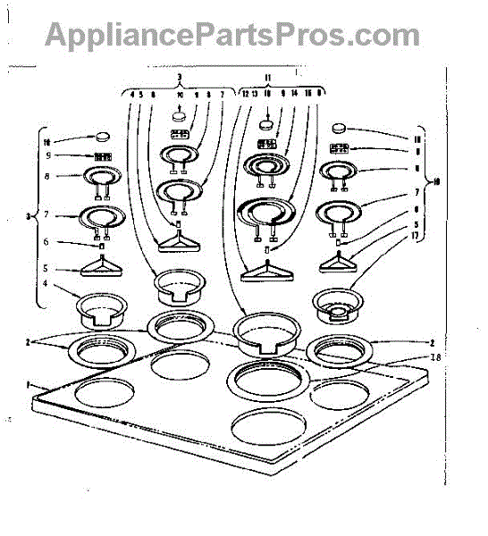 Parts for Kenmore 101.933610 (101933610, 101 933610): Cook Top Section Parts