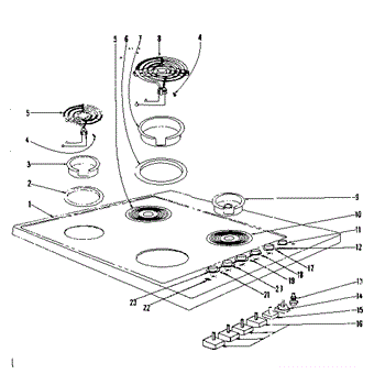 Parts for Kenmore 101.9336400 (1019336400, 101 9336400): Cook Top Section Parts