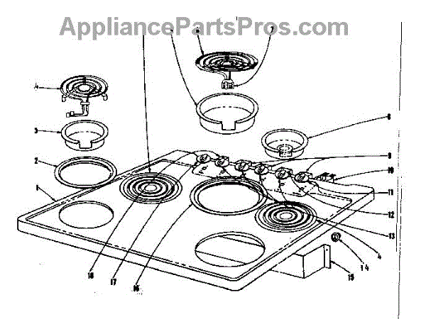 Parts for Kenmore 101.934630 (101934630, 101 934630): Cook Top Section Parts