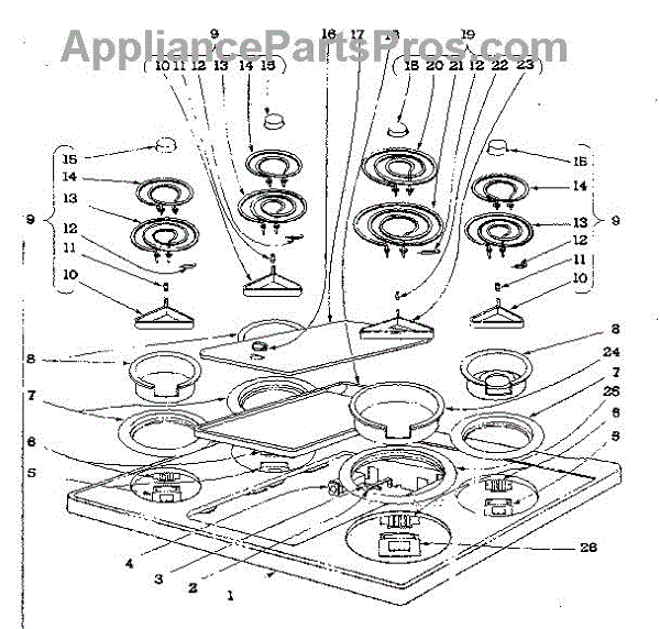 Parts for Kenmore 101.935590 (101935590, 101 935590): Cook Top Section Parts