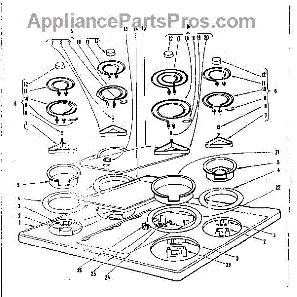 Parts for Kenmore 101.935600 (101935600, 101 935600): Cook Top Section Parts