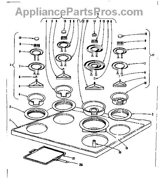 Parts for Kenmore 101.936610 (101936610, 101 936610): Cook Top Section Parts