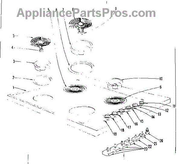 Parts for Kenmore 101.9366480 (1019366480, 101 9366480): Cook Top Section Parts