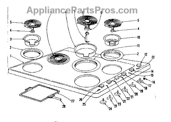 Parts for Kenmore 101.9386480 (1019386480, 101 9386480): Cook Top Section Parts