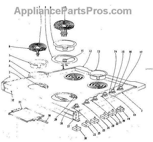 Parts for Kenmore 101.9386590 (1019386590, 101 9386590): Cook Top Section Parts