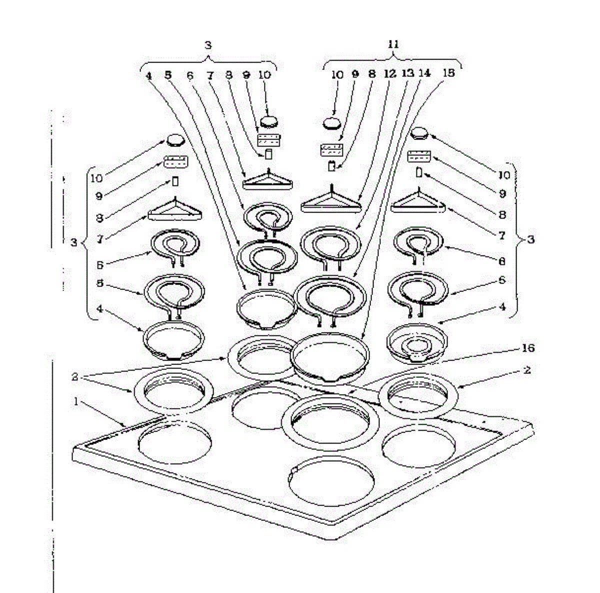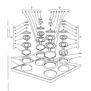 Parts for Kenmore 101.962590 (101962590, 101 962590): Cook Top Section Parts