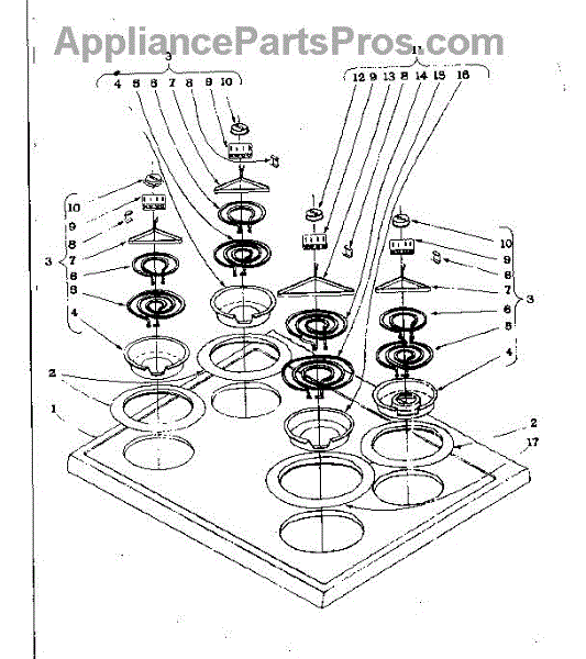 Parts for Kenmore 101.963581 (101963581, 101 963581): Cook Top Section Parts
