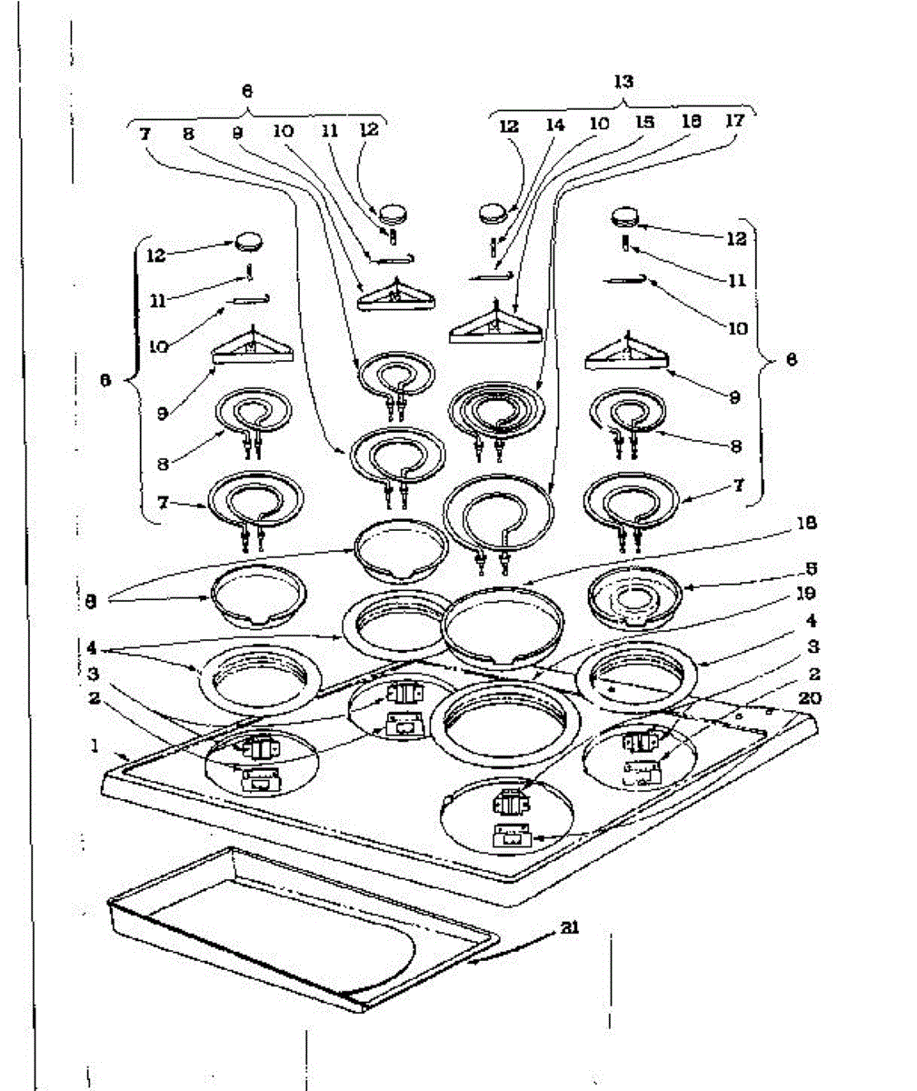 Parts for Kenmore 101.964592 (101964592, 101 964592): Cook Top Section Parts