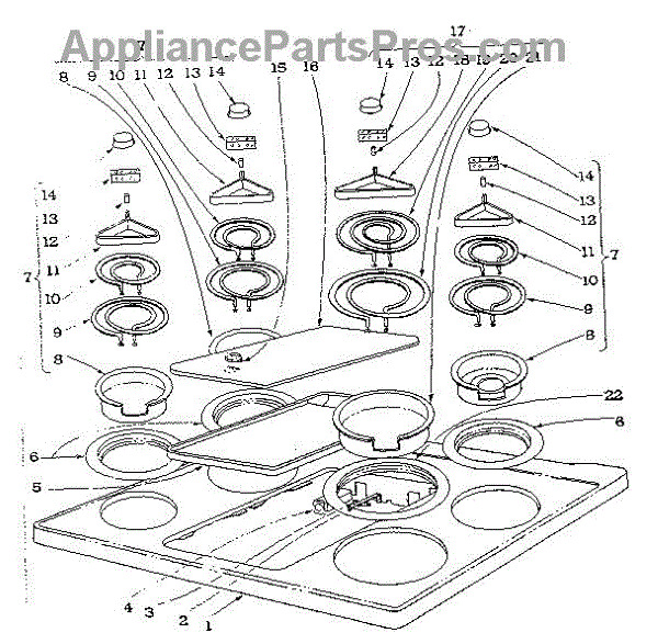 Parts for Kenmore 101.974597 (101974597, 101 974597): Cook Top Section Parts