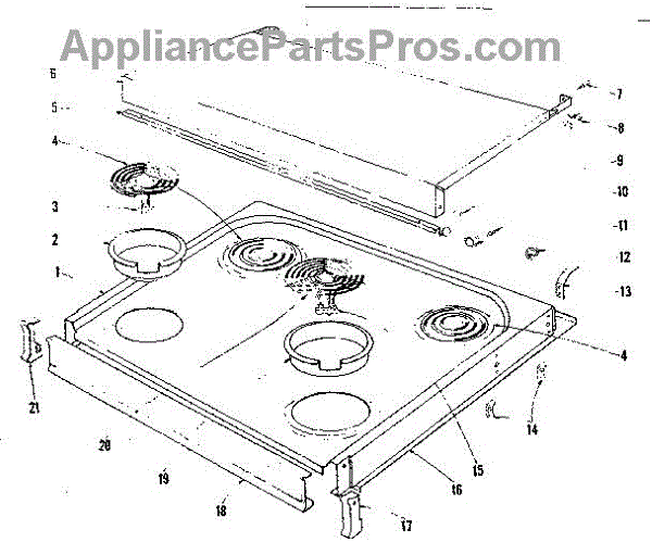 Parts for Kenmore 101.9926400 (1019926400, 101 9926400): Cook Top Section Parts