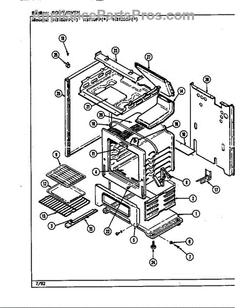 This factory screw secures appliance components to their mounting points. Replace missing, worn, or stripped hardware to restore a tight fit, proper alignment, and quieter operation across the affected assembly.