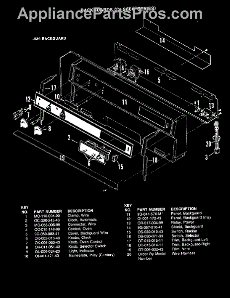 Parts for Hardwick CPD9822A539ACG: 03 - Control Panel (-539 Models) Parts