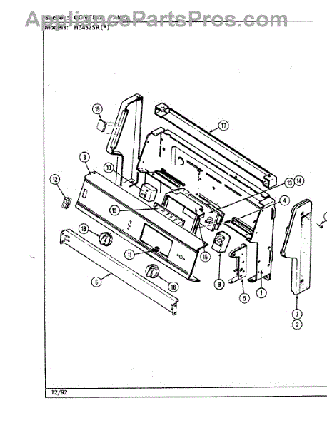 Parts for Hardwick H3432SRW: 02 - Control Panel Parts