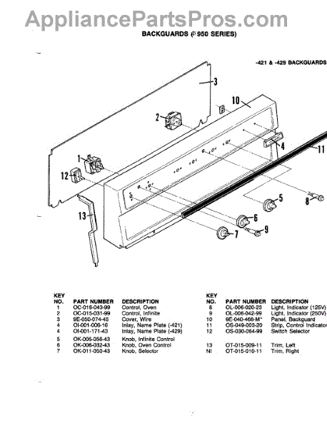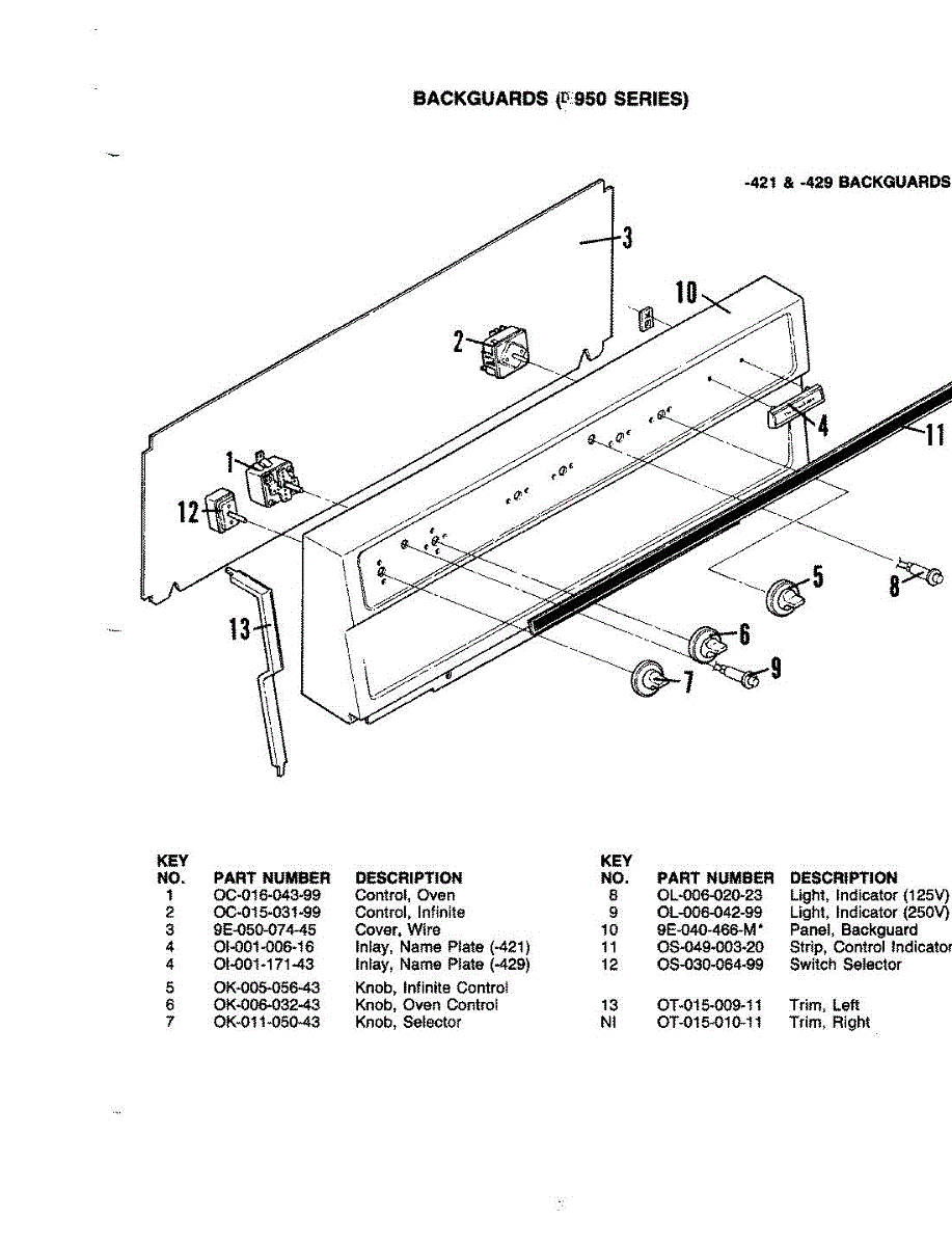 Parts for Hardwick PD-950: 02 - Control Panel (-421 & -429) Parts