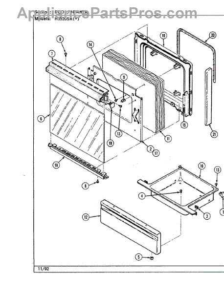 Parts for Hardwick H3520SRW: 03 - Door / Drawer (H3520srx) Parts