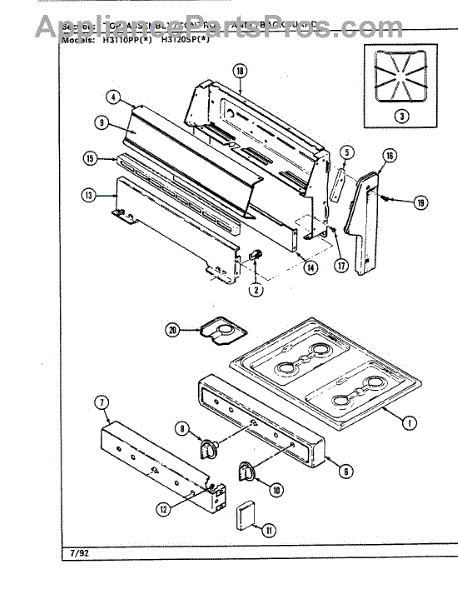 Parts for Hardwick H3110PPW: 05 - Top Assembly (H311oppx, H3120spx) Parts
