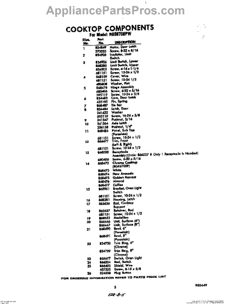 Parts for RGE6700PW