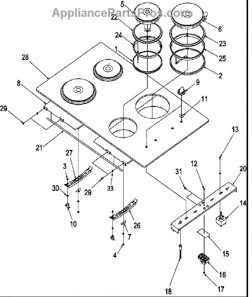 Parts for Amana AKE30W-P8597903S: Cooktop Assembly Parts