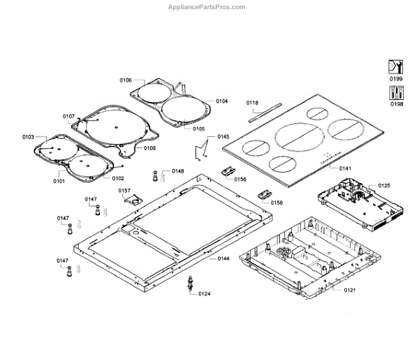 This induction hotplate is the glass-top cooking surface and induction coil assembly that provides targeted heating for compatible cookware, restoring a single cooktop zone to working condition. It replaces a damaged or non-heating induction surface. What it does: