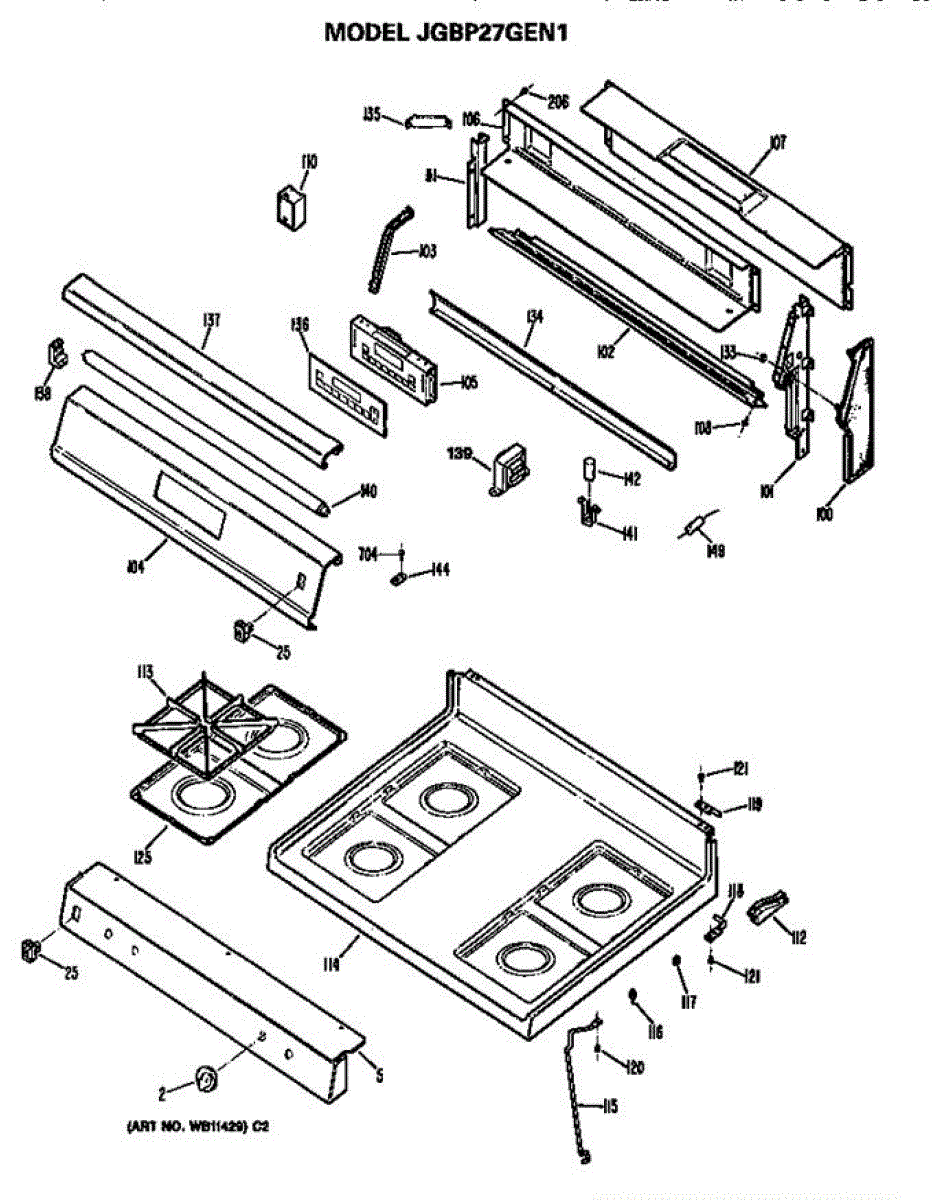 Parts for Ge JGBP27GEN1: Cooktop And Backsplash Parts
