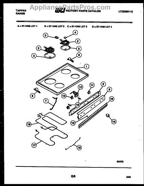 Parts for Frigidaire 37-1048-66-01: 02 - Cooktop, Broiler And Control Parts