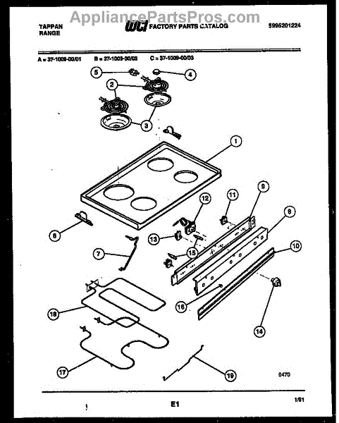 Parts for Frigidaire 37-1009-00-02: 04 - Cooktop And Broiler Parts