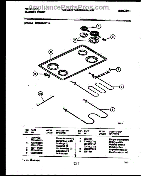 Parts for Frigidaire FED300WADA: 03 - Cooktop And Broiler Parts