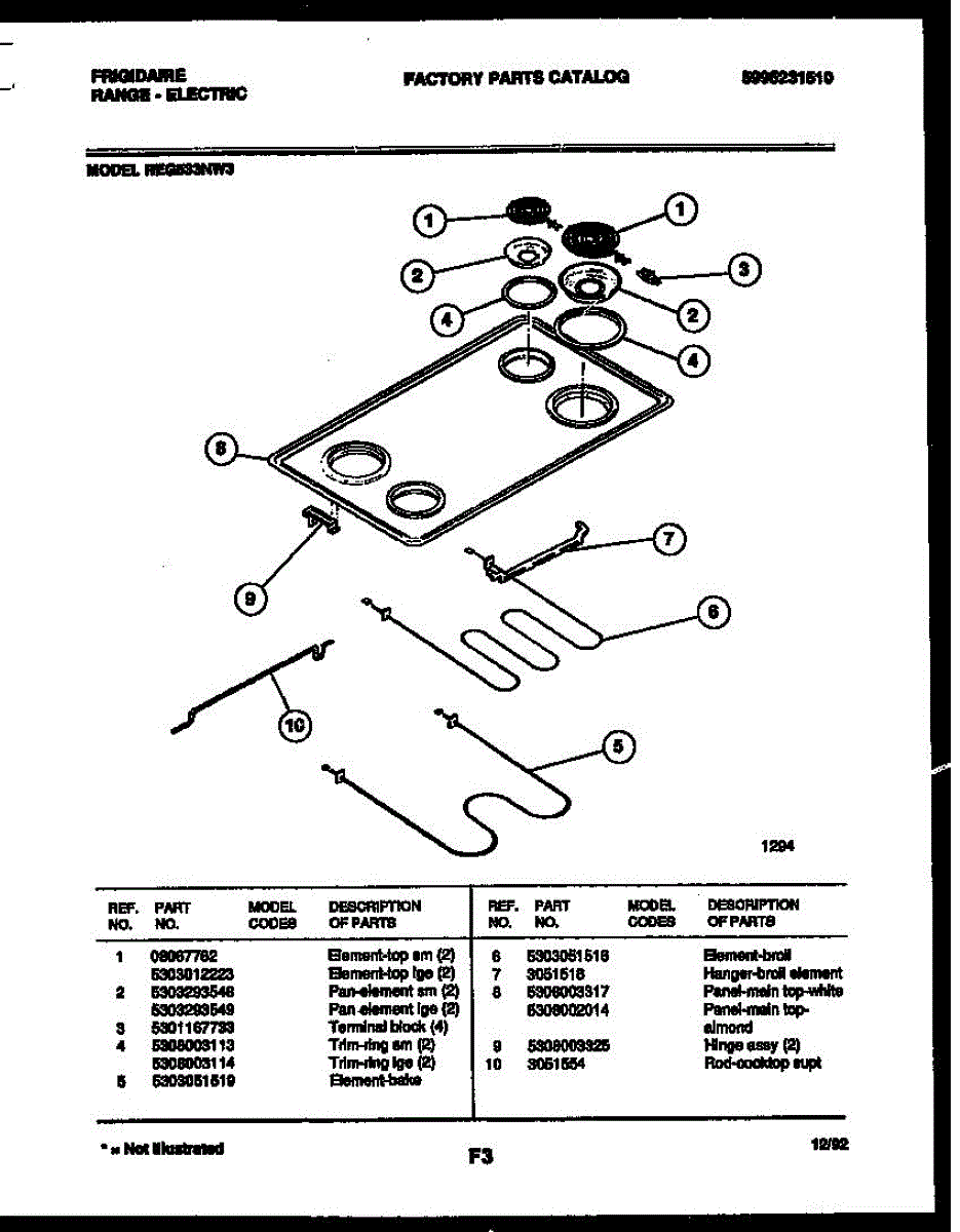 Parts for Frigidaire REG533NW3: 03 - Cooktop And Broiler Parts