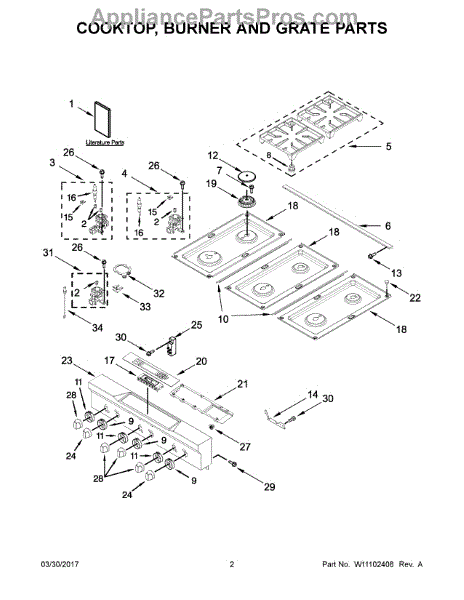 This is a replacement cooktop top assembly that restores the cook surface and burner layout on compatible Whirlpool ranges. It replaces a damaged, cracked, or worn cooktop so you can safely resume normal cooking. What it does: