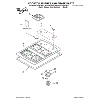 Parts for Whirlpool SCS3014GB3: 01 - Cooktop, Burner And Grate Parts