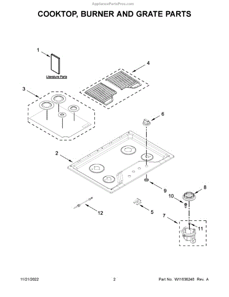 Parts for Amana AGC6540KFS05: Cooktop, Burner And Grate Parts