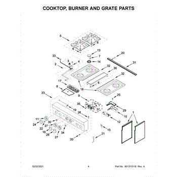 The Grate Pad is an OEM component for Whirlpool gas and electric ranges. Located underneath grates atop burner assemblies, this insulating pad protects the cooktop surface during use.