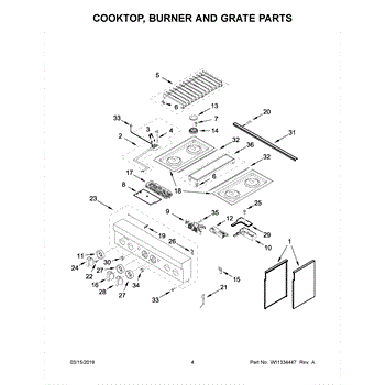 The Grate Pad is an OEM component for Whirlpool gas and electric ranges. Located underneath grates atop burner assemblies, this insulating pad protects the cooktop surface during use.