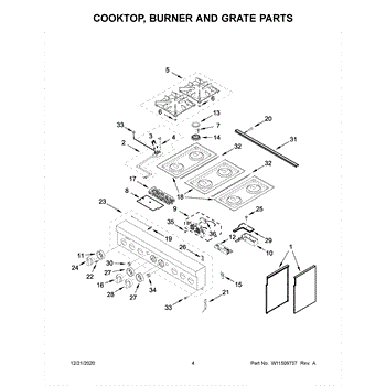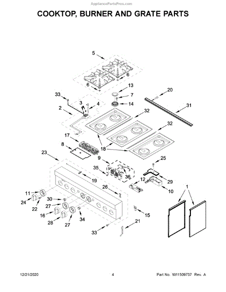 The Grate Pad is an OEM component for Whirlpool gas and electric ranges. Located underneath grates atop burner assemblies, this insulating pad protects the cooktop surface during use.