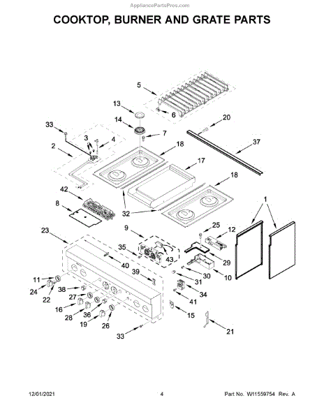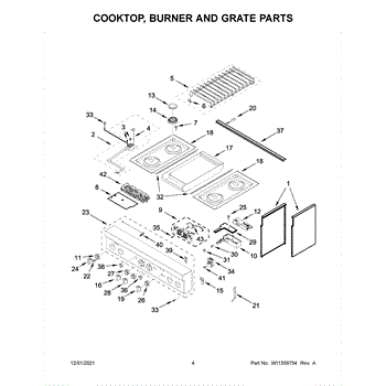 The Grate Pad is an OEM component for Whirlpool gas and electric ranges. Located underneath grates atop burner assemblies, this insulating pad protects the cooktop surface during use.