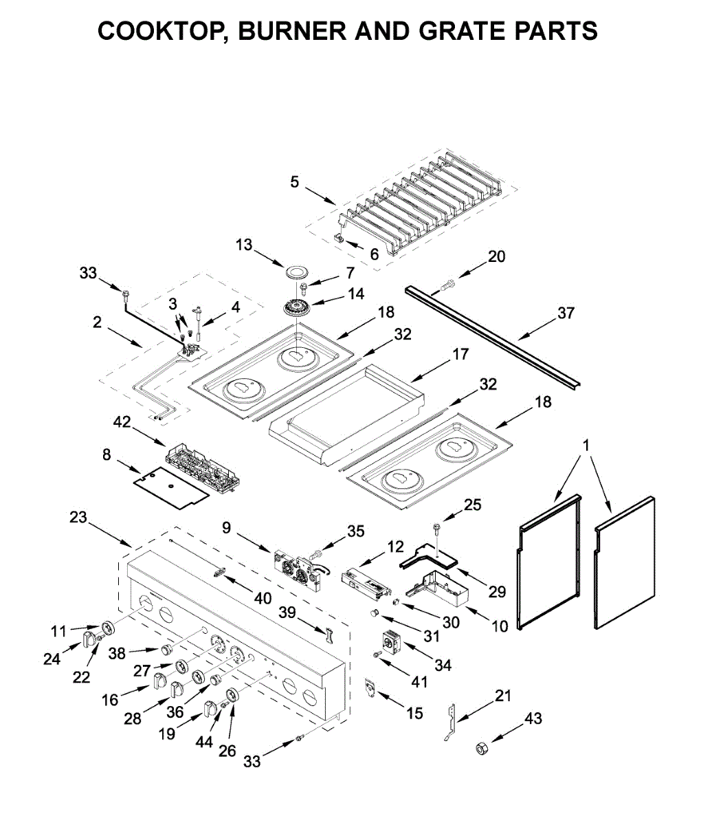 Causes related to normal wear over extended use, exposure to cleaning chemicals, or damage from heavy pans accidentally sliding off grates.