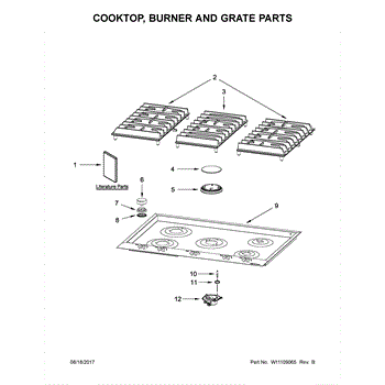 Cast iron grate that sits over gas burners on your cooktop. Replace if cracked, chipped, rusted, or damaged. Supports pots and pans during cooking.