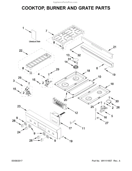 This cooktop glass surface is the smooth top replacement that restores a clean, even cooking area and holds burners and controls in place. It helps maintain safe, efficient stove operation and a finished look for the range. What it does