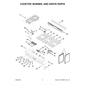 The Grate Pad is an OEM component for Whirlpool gas and electric ranges. Located underneath grates atop burner assemblies, this insulating pad protects the cooktop surface during use.