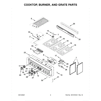 The Grate Pad is an OEM component for Whirlpool gas and electric ranges. Located underneath grates atop burner assemblies, this insulating pad protects the cooktop surface during use.