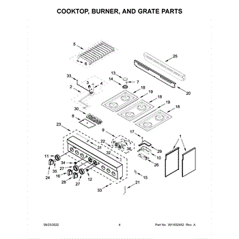 The Grate Pad is an OEM component for Whirlpool gas and electric ranges. Located underneath grates atop burner assemblies, this insulating pad protects the cooktop surface during use.