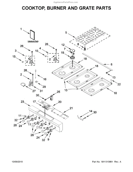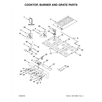 This is a replacement cooktop top assembly that restores the cook surface and burner layout on compatible Whirlpool ranges. It replaces a damaged, cracked, or worn cooktop so you can safely resume normal cooking. What it does: